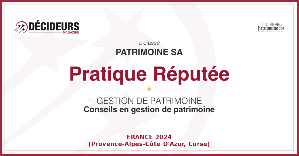 Patrimoine SA est classé dans la revue Décideurs dans la catégorie : « Pratique réputée ».